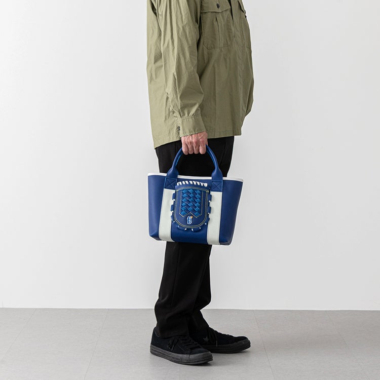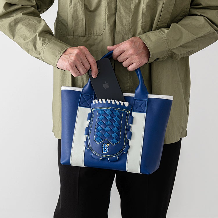 横浜DeNAベイスターズのチームカラーである青と白を基調に仕立てた、特別仕様のグローブミニトート。