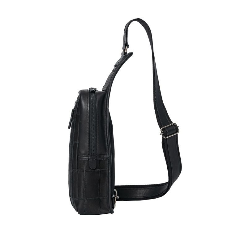 体に心地よくフィットする形状にこだわりました。開口部はダブルジッパーで開けやすい構造に。長財布や折りたたみ傘、500mlのペットボトルも収納できるサイズ感です。