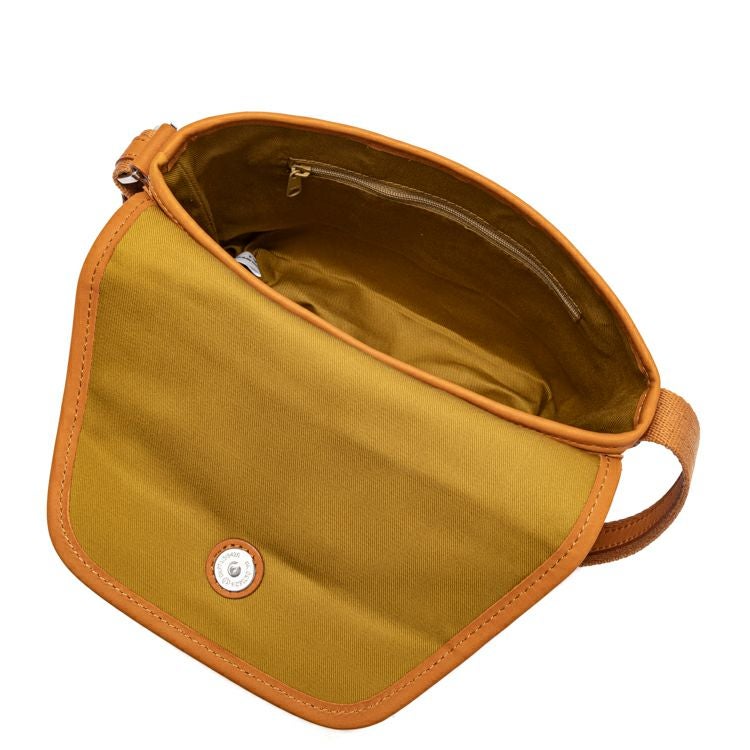 開口部はフラップタイプで、シンプルな動作での開けやすさが魅力。マグネットボタンで留める構造で、ボタンを少し立体的に留めることでフラップが少し浮いたような構造になり、開ける際に指に引っかかり、開けやすくしました。ショルダーストラップ裏面はコットン素材で、肌当たりを良くしました。