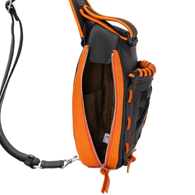 読売ジャイアンツのチームカラーであるブラックとオレンジを基調に、定番グローブボディバッグをベースに特別仕様で仕上げました。