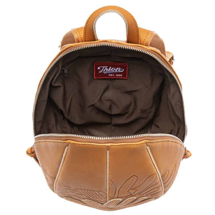 プロ野球選手も使用するグラブ製造から始まったTRIONのものづくり。その技術を最大限に活かし、日常に溶け込むバッグとして誕生したグローブミニリュック。グローブの型紙をモチーフにした型押しデザインで、刻印によるレザーの濃淡と、しなやかなグラブレザーの触り心地もお楽しみ頂けます。