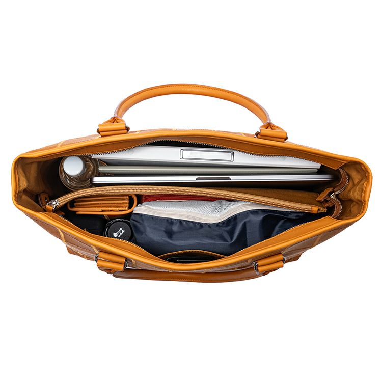 内部は取り外し可能の仕切りポケット、マチありのオープンポケット3つ、ジッパーポケット1つ付きで、荷物の仕分けや整理に便利です。