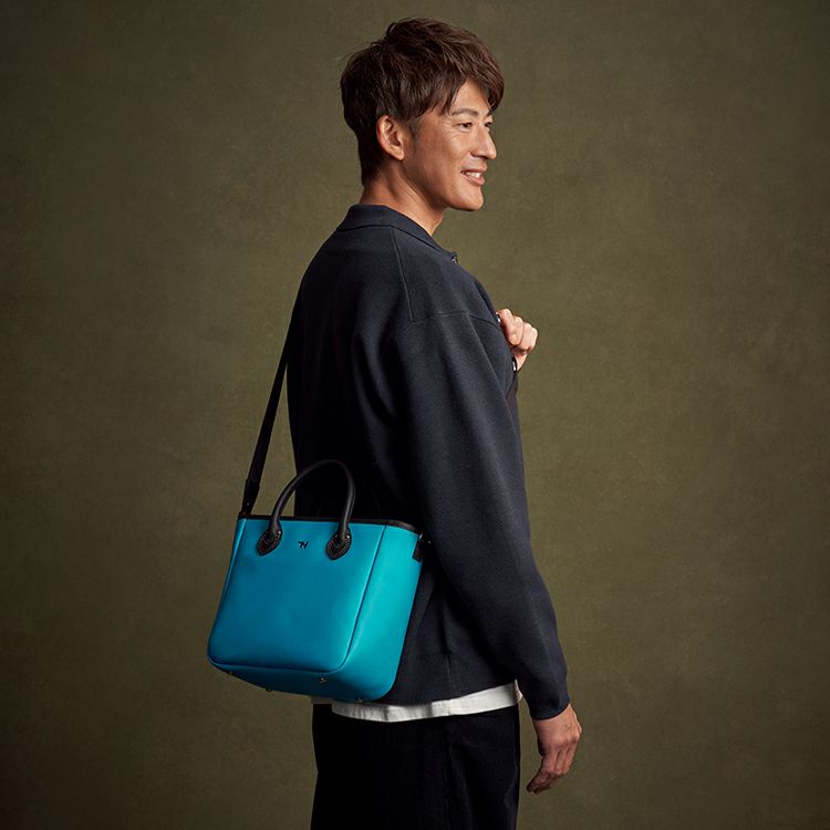 軽やかなブルーは、暗くなりがちな秋冬コーデのアクセントにもおすすめです。取り外し可能なショルダーを外せば小さめトートとして、肩がけすれば両手が空いてアクティブに。