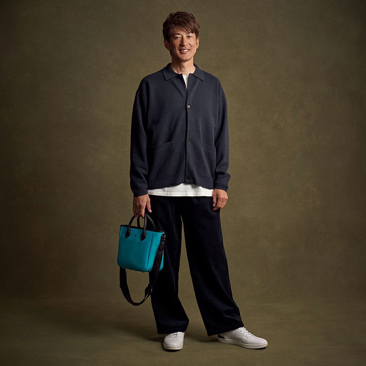 TRIONらしい上質なグラブレザーを使用し、手持ち・肩がけの2WAY仕様でシーンに応じた使い分けが可能です。女性にも使いやすいサイズ感で、外装には能見さんのイニシャル「N」とTRIONの「T」を掛け合わせた特別なロゴ刺繍をワンポイントに。