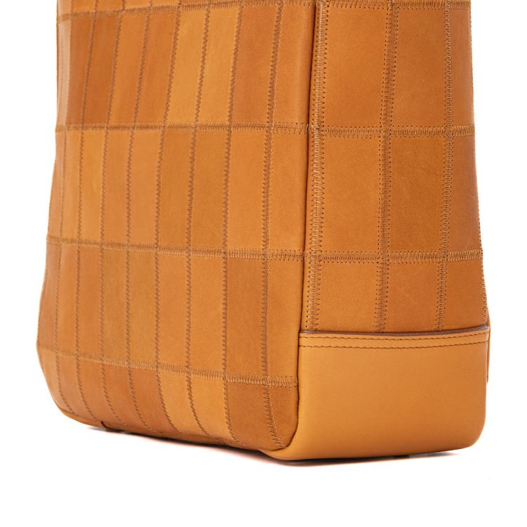 野球グローブの製造工程で出た上質な余り革を独自の製法で繋ぎ合わせた、アップサイクルな一点物。