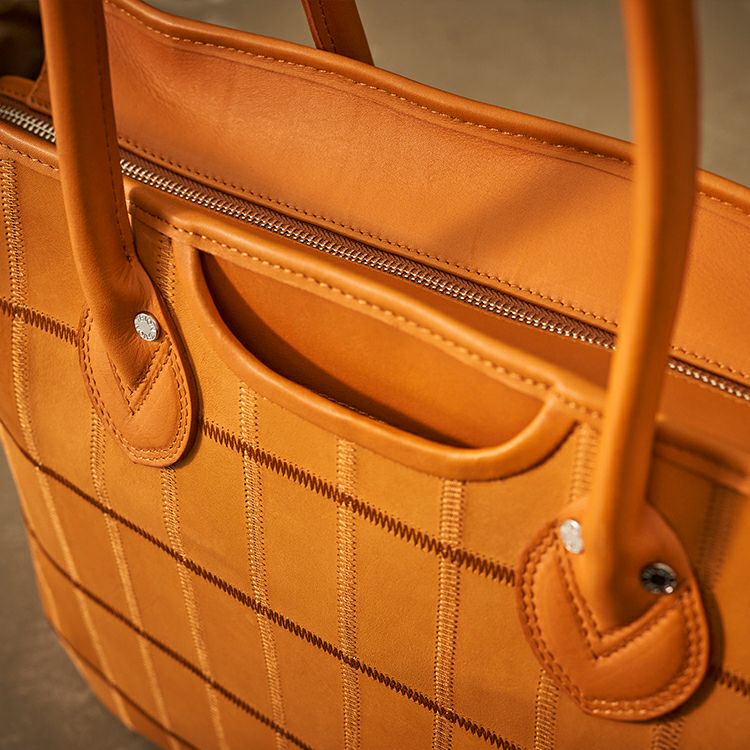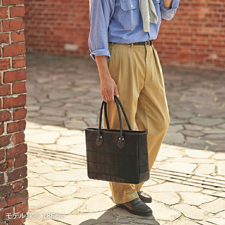 TRIONの代表作、パネルトート横型がさらに使いやすく、長く付き合える形にアップデート。従来の革の上質感、パネルデザインはそのままに、持ちやすさや機能性、丈夫さに磨きをかけたレザートートバッグです。