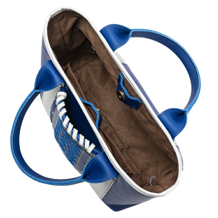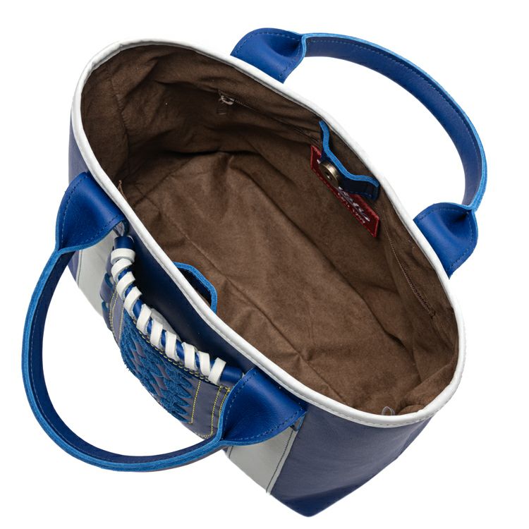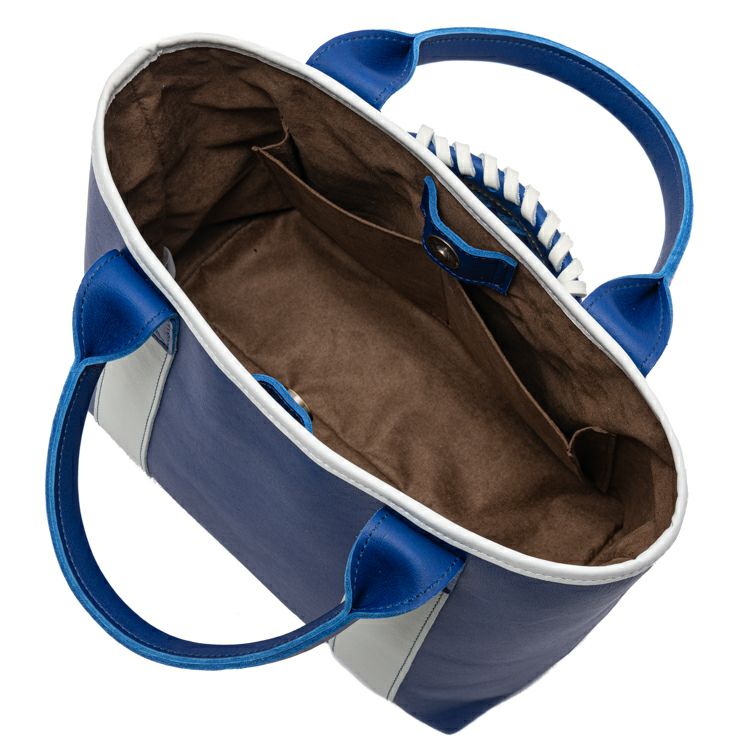 横浜DeNAベイスターズのチームカラーである青と白を基調に仕立てた、特別仕様のグローブミニトート。