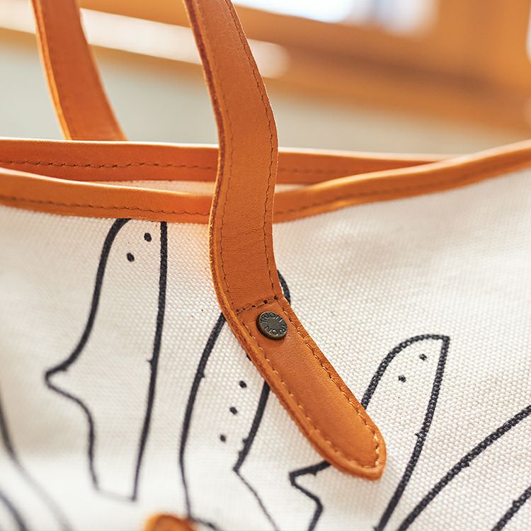 本体には厚手で丈夫なキャンバス素材を使用。ハンドルや開口部のパイピング、一部のディテールには、TRIONが誇るグラブレザーを贅沢に使用しています。