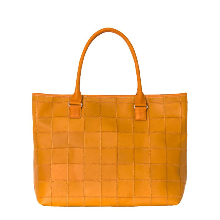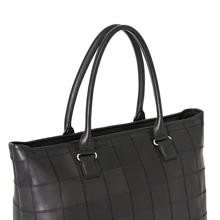 グラブレザーの丈夫さとタフさを持ち合わせ、普段使いできる大きめトートバッグ。パネルの形を正方形にしたことで、規則性のある落ち着いた印象に。
