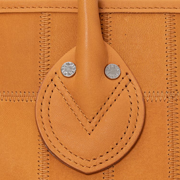 ハンドルの長さを見直すことで、従来よりも肩掛けがしやすくなりました。また、底面には新たに底鋲(そこびょう)を追加。床置き時にも安定し、革の摩耗や型崩れを防ぎながら、美しい状態を長く保つことができます。さらに、サイドマチには一枚革の補強パーツをプラス。荷物を多く入れても型崩れしにくく、耐久性が増すだけでなく、視覚的なアクセントにもなり、全体の印象を整えてくれます。