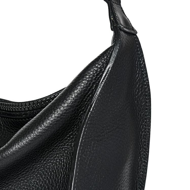 クラフトマンシップの象徴の一つが、柔らかな風合いのシボ革のエッジ(断面部)に施したコバ仕様。バッグ作りの常識では考えられないほど何層にも塗り重ね、手間をかけて磨き上げることで、重厚感と美しい光沢を生み出し、ミニマルなフォルムを際立たせます。