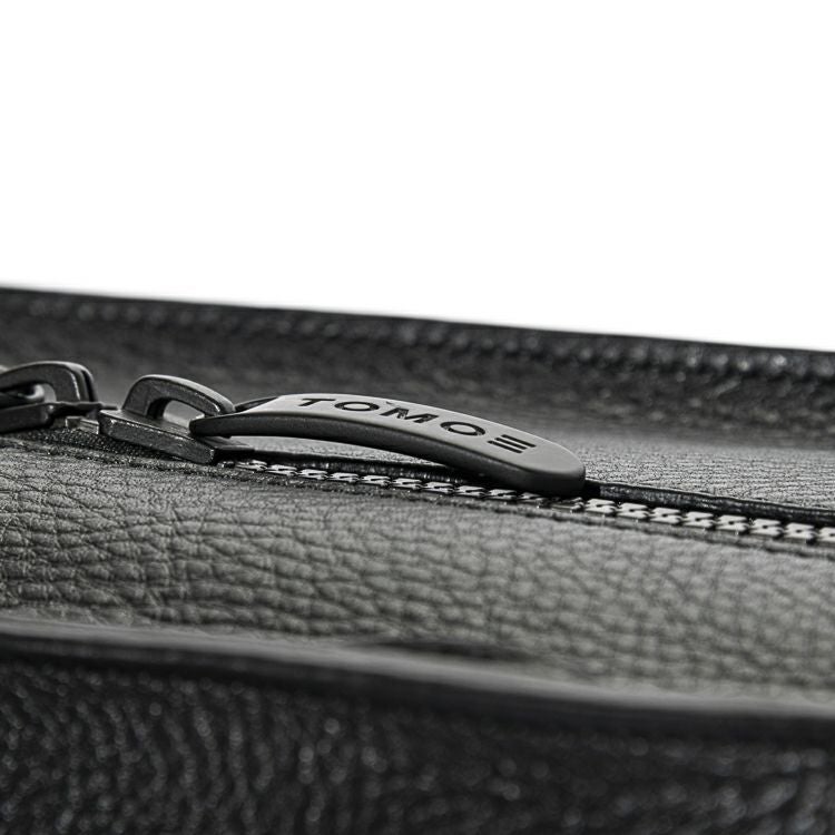 ロゴ入りのスチール素材の引き手は、緩やなカーブをつけることで、指でつまみやすい形状に開発しました。ダブルジッパーで、左右どちらからでもスマートに開閉できます。