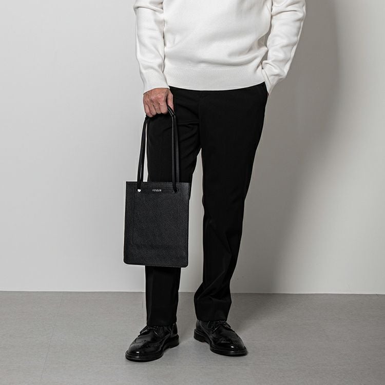 スリムで計算されたフォルムでミニマルさが引き立つ2WAYショルダー。シボの凹凸感が上品なイタリアの型押しレザーを使用。シンプルでスマートなフォルムが際立つデザインに。