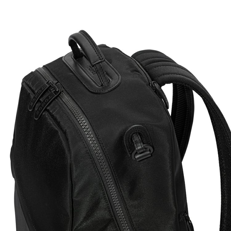 - 撥水性を備えたナイロン素材:インターロック加工を施したナイロンが、雨や汚れを防ぎながら、随所にレザーを効かせ上質さを演出。