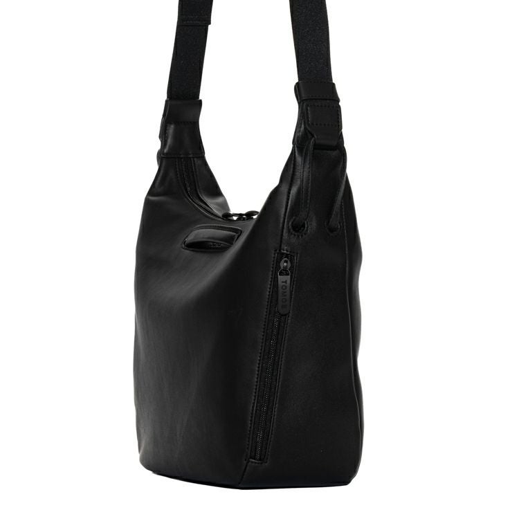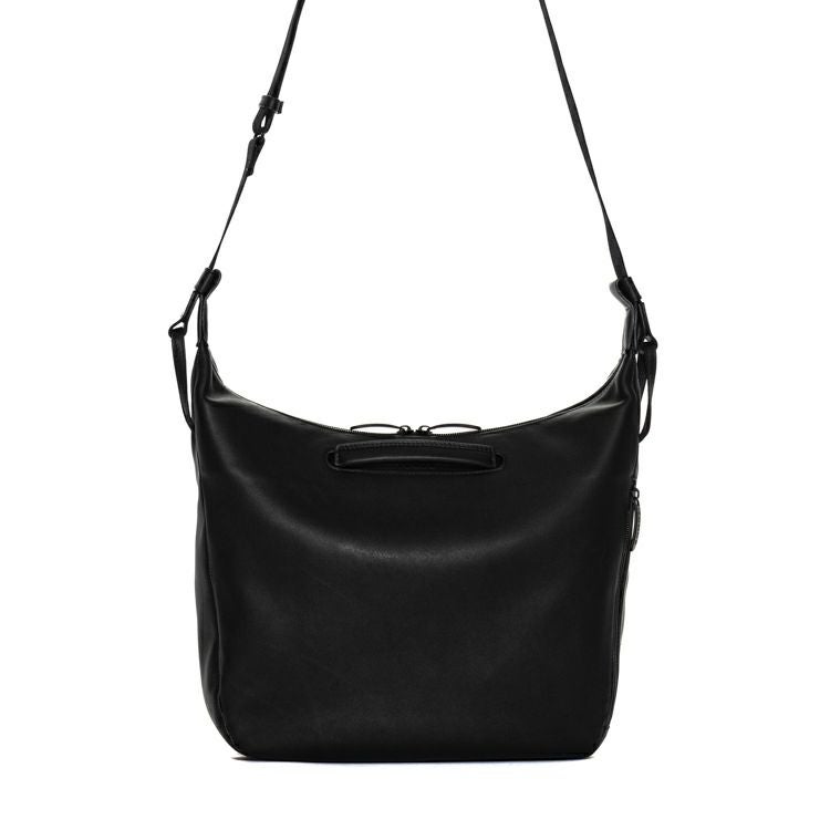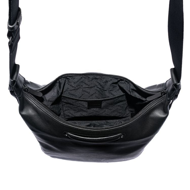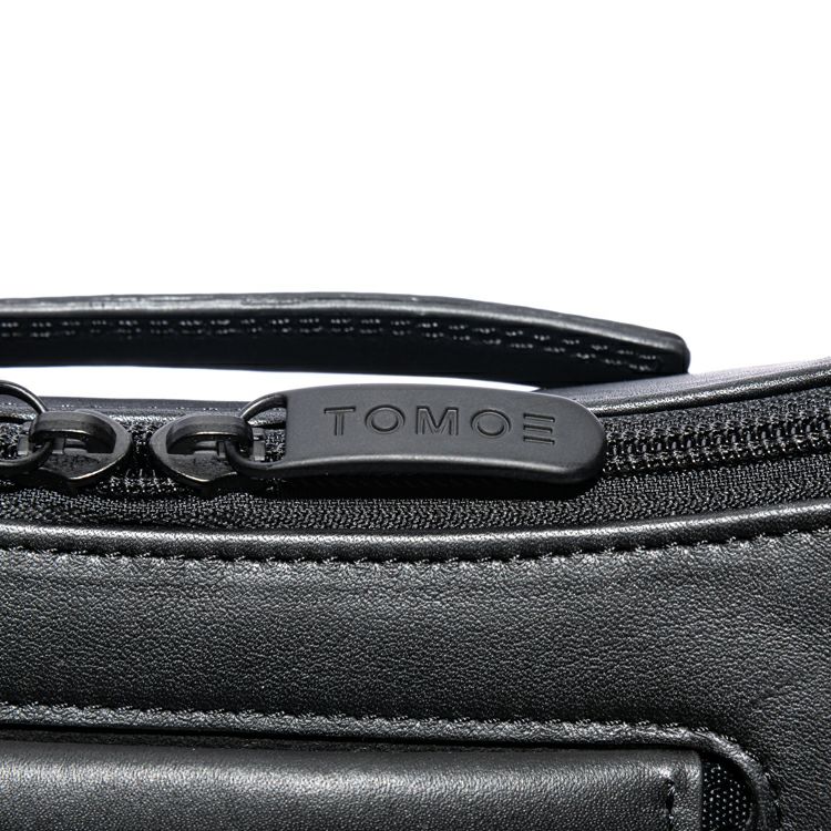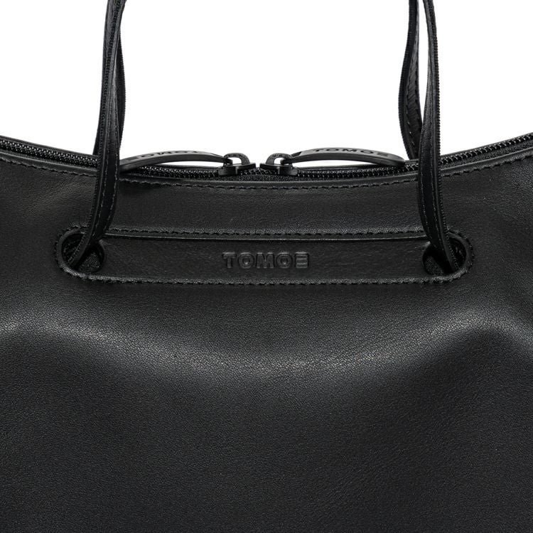 ショルダーベルトとハンドルが一体化した構造で、手持ちの際にハンドルを引き上げると、連結されたショルダーベルトの根元が自然と垂れ下がり、手持ちしやすいフォルムに変化。TOMOEらしい使いやすさを兼ね備えたギミックです。薄くしなやかなソフトレザーを使うことで、軽さも実現。オンオフ、ジェンダーを問わずお使いいただけます。