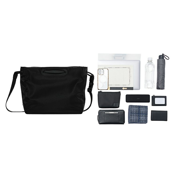 トート、ショルダー、そしてハンドル使いへと、スタイルに応じて持ち方を変えられる3WAY設計。ハンドルとショルダーが連動し、持ち方を切り替えるたびに、自然と姿が整います。シンプルなデザインに宿る、TOMOEらしい機能美で、年齢・性別問わず、どんなスタイルにも馴染みます。