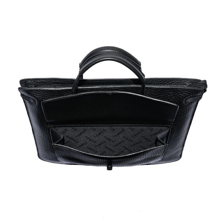 カッチリしたフォルムに、肉厚で重厚感のあるシボ革(タンブルレザー)を採用。しなやかな風合いのシボ革は手にしっとりと馴染む質感で上質なモード感を演出します。