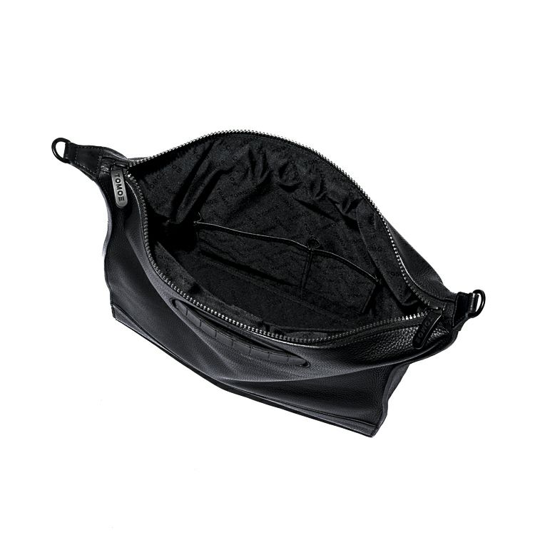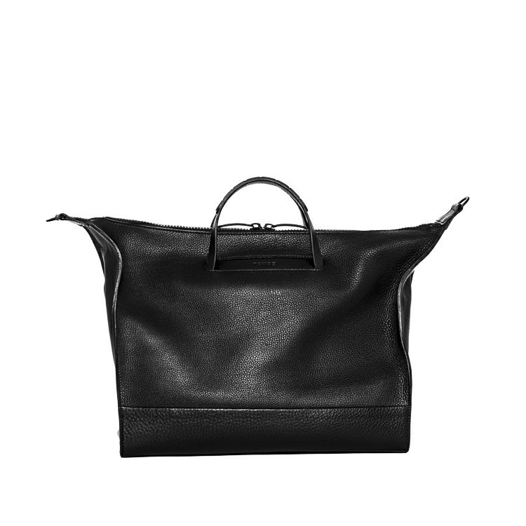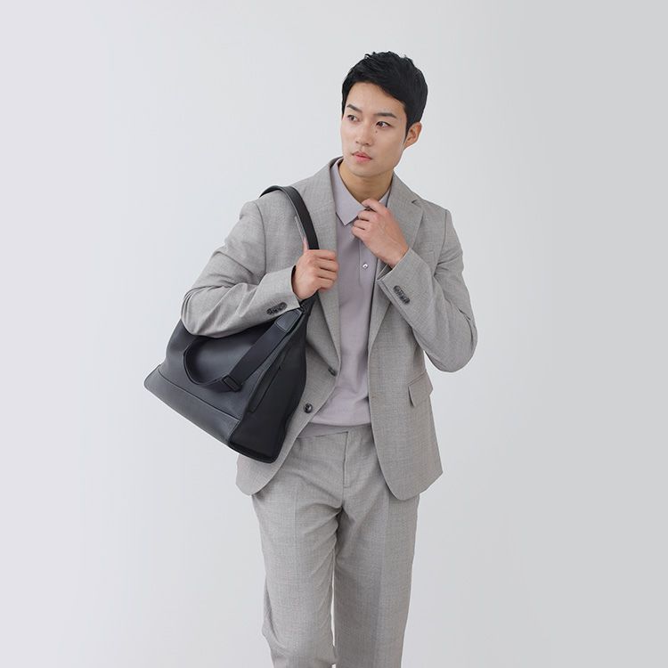 タンブルレザー(シボ革)の重厚な上質感と、オリジナルギミックを用いた機能がデザインで融合。革の上品さをデザインでモードに昇華させ、大人の品と実用性を兼ね備えた存在感溢れる本革トートバッグ。