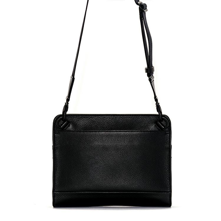 また、ショルダーストラップの取り付け金具位置を背面にすることで、クラッチ持ちの際にデザインの邪魔をしないといった工夫も。