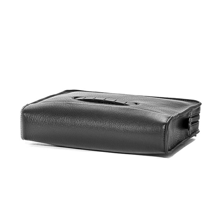 革のエッジ(断面部)は厚みのあるコバ塗りを採用。何層にも塗り重ね磨き上げた職人技で、重厚感と美しい光沢を生み出し、ミニマルでシャープなフォルムを際立たせています。