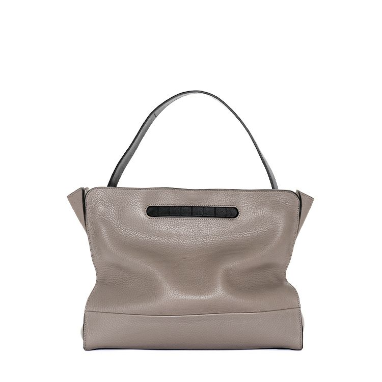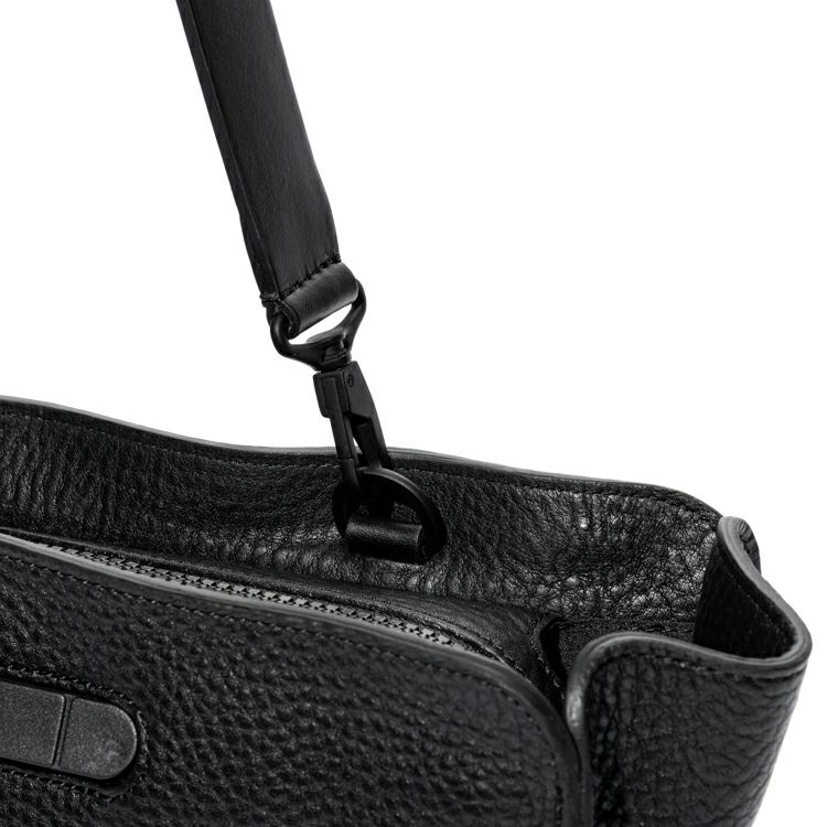 取り外し可能なヌメ革素材のショルダーストラップでトートに、バッグ上部のハンドルを使って手持ちでと、スタイルによって持ち方を変えられます。バッグ内側にマチ幅を絞る調整ベルト付きで、荷物が少ない際にマチ幅を絞り、シボ革のしなやかさが生み出す独特のドレープを楽しむもおすすめ。底面にはオリジナルの底鋲付きで床置きも安心。