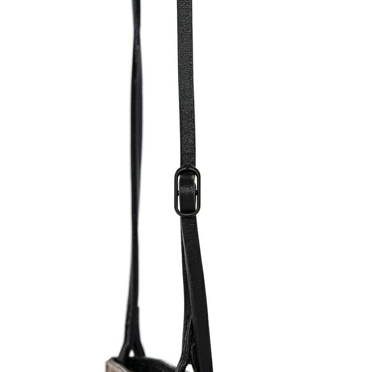 コインケースの開閉部には、独自開発したスチールクリップを使用。開閉の動作をスマートに行えます。「レザー×異素材」のハイブリットなデザインがアクセントに。スムースレザーを使ったストラップは、長さ調整可能。