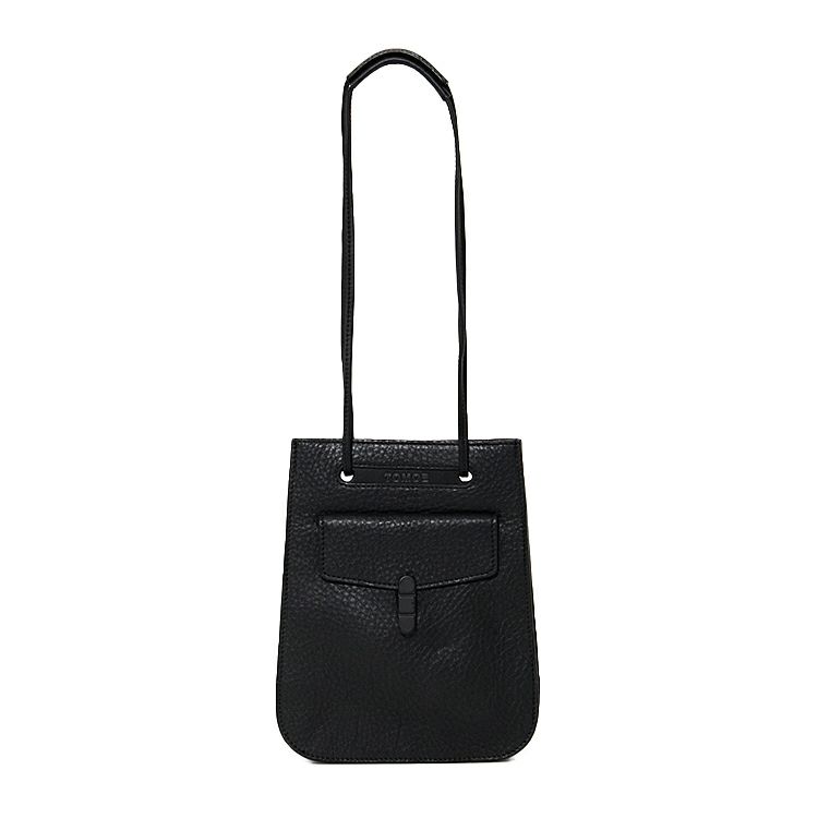 マチは2つのパーツが中央で折り込まれた構造で、収納に合わせてマチが変化します。開口部に留め具の無いシンプルな作りながら、ストラップによって自然と絞られる巾着型が特徴。