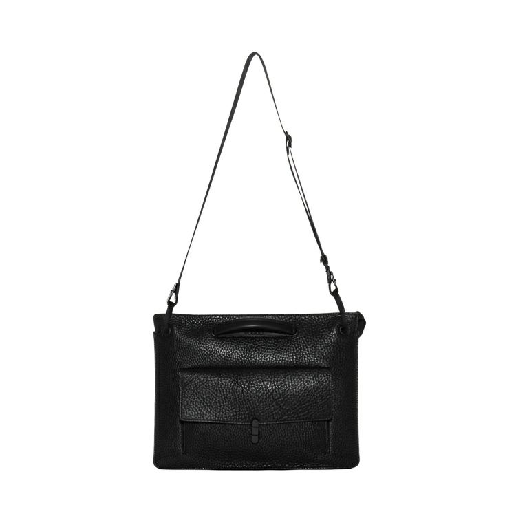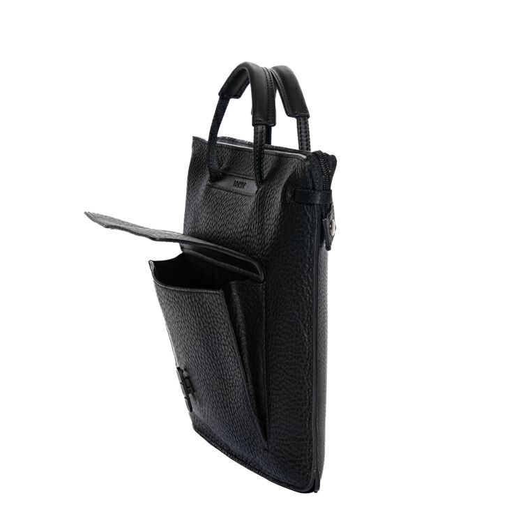 カッチリしたフォルムに、肉厚で重厚感のあるシボ革(タンブルレザー)を採用。しなやかな風合いのシボ革は手にしっとりと馴染む質感で上質なモード感を演出します。