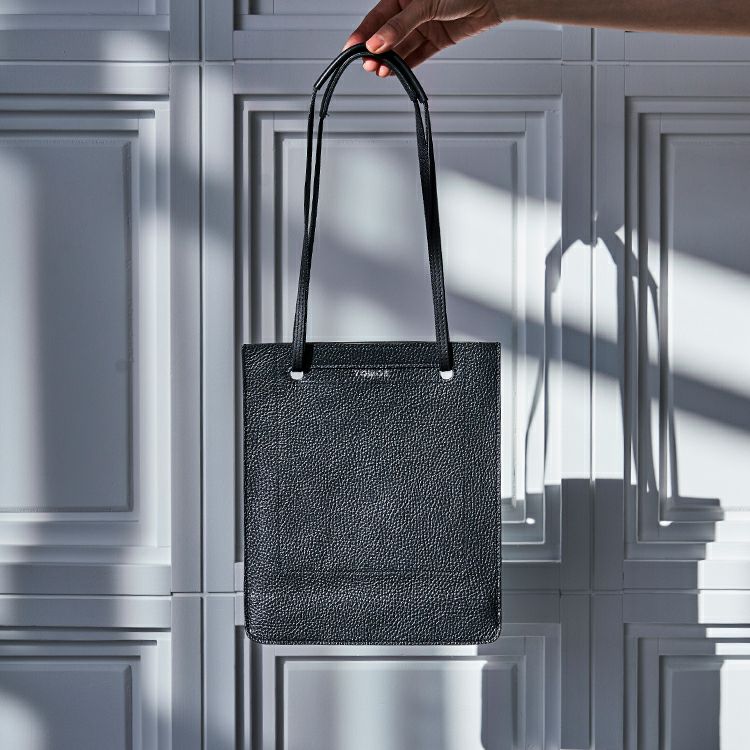 ハンドルを1本にして斜め掛けショルダーに、2本にして手提げとして使える2WAY仕様。持つ時にハンドルを引っ張ると自然と開口部が閉じる、実用性も考え抜かれた構造です。