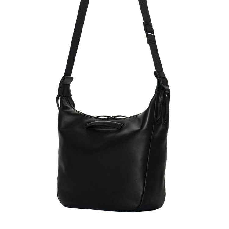 ショルダーベルトとハンドルが一体化した構造で、手持ちの際にハンドルを引き上げると、連結されたショルダーベルトの根元が自然と垂れ下がり、手持ちしやすいフォルムに変化。TOMOEらしい使いやすさを兼ね備えたギミックです。薄くしなやかなソフトレザーを使うことで、軽さも実現。オンオフ、ジェンダーを問わずお使いいただけます。