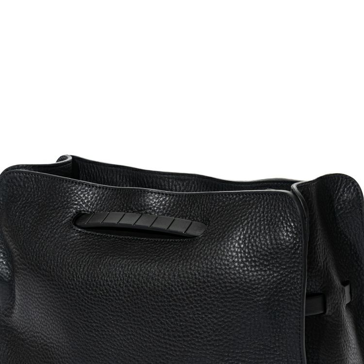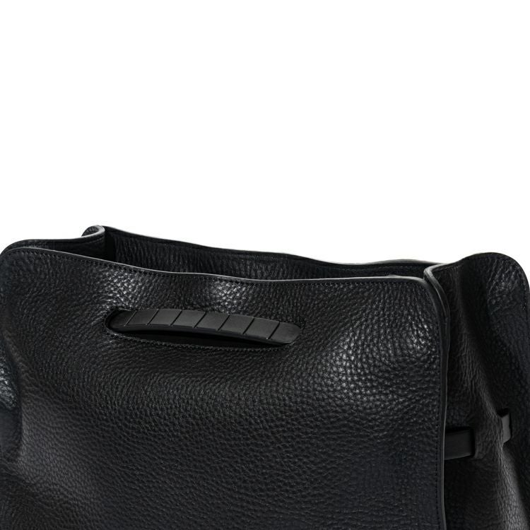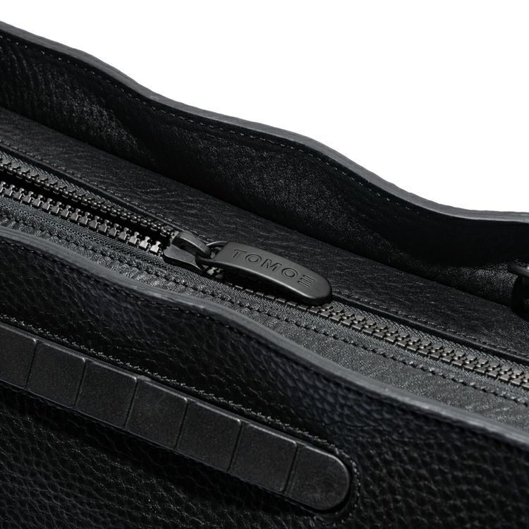 クラフトマンシップの象徴の一つが、柔らかな風合いのシボ革のエッジ(断面部)に施したコバ仕様。バッグ作りの常識では考えられないほど何層にも塗り重ね、手間をかけて磨き上げることで、重厚感と美しい光沢を生み出し、ミニマルなフォルムを際立たせます。