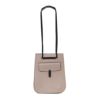 マチは2つのパーツが中央で折り込まれた構造で、収納に合わせてマチが変化します。開口部に留め具の無いシンプルな作りながら、ストラップによって自然と絞られる巾着型が特徴。