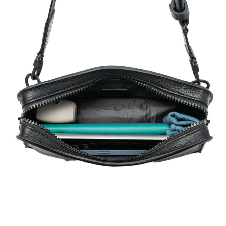 財布やスマホなど貴重品のほか、手回り品一式が収まるサイズ感。A5サイズまでのタブレットも収納可能で、バッグインバッグとしても使用いただけます。