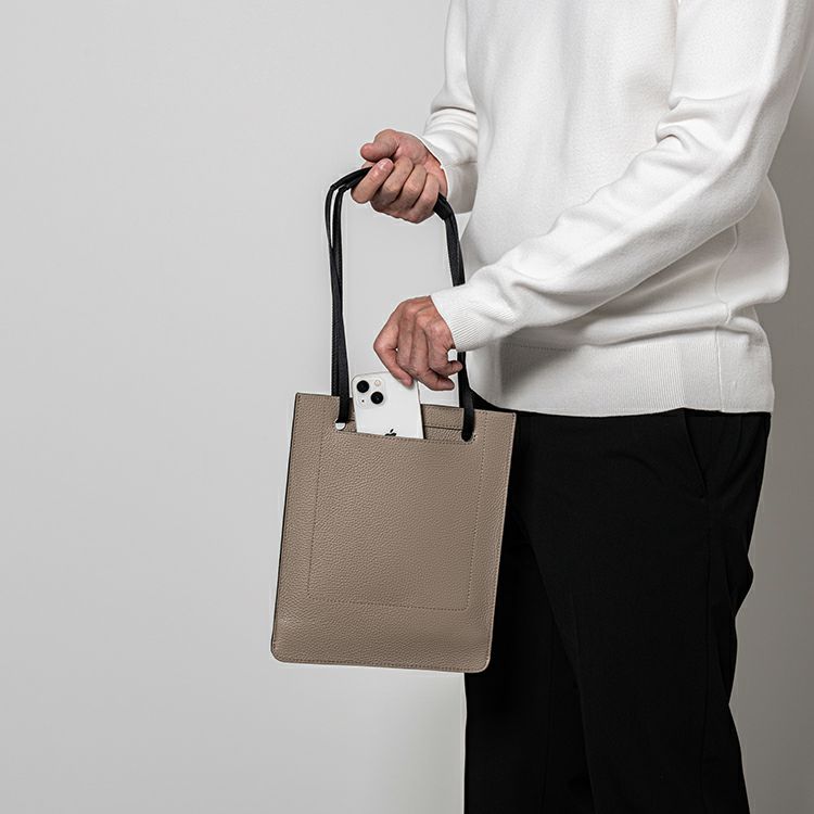 スリムで計算されたフォルムでミニマルさが引き立つ2WAYショルダー。シボの凹凸感が上品なイタリアの型押しレザーを使用。シンプルでスマートなフォルムが際立つデザインに。