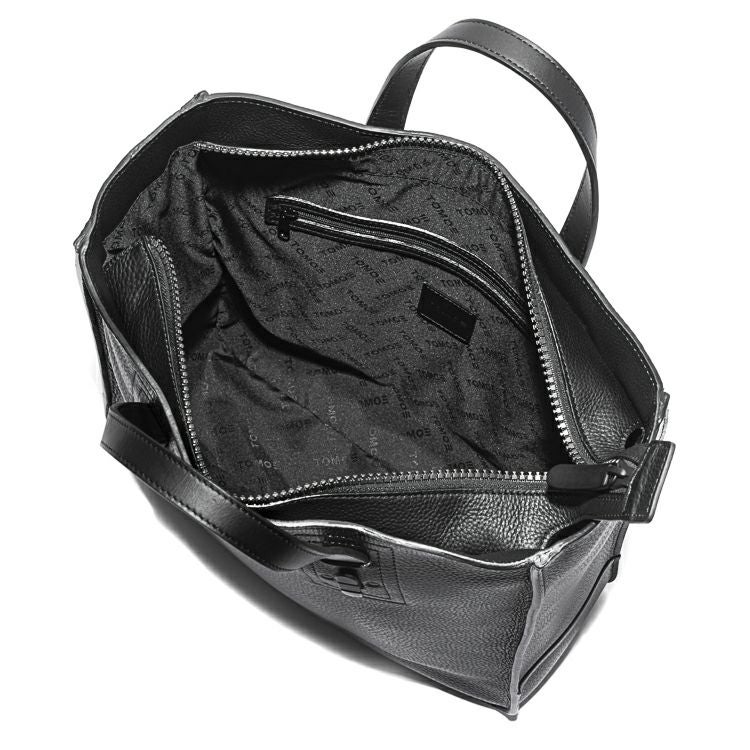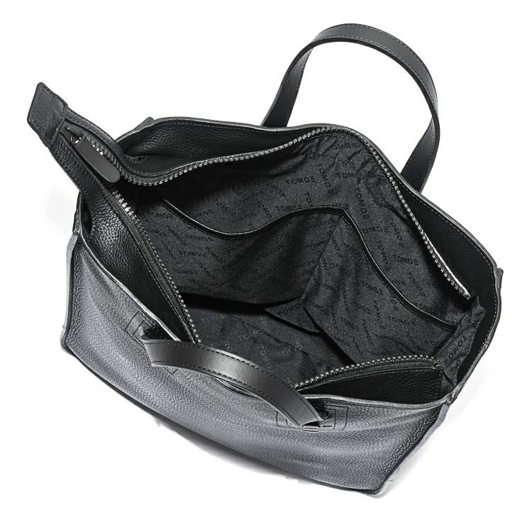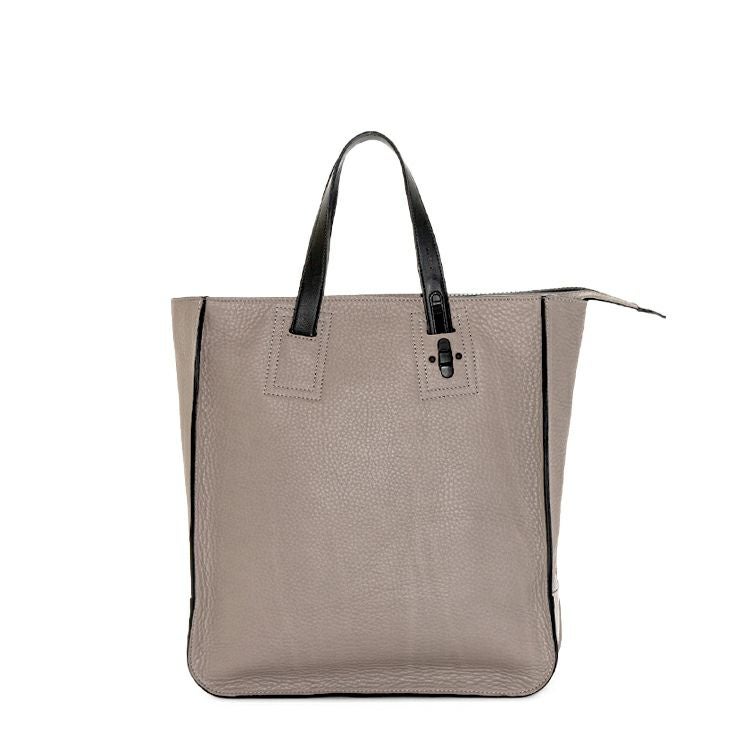 肉厚なシボ革の上質感を引き出す、スタイリッシュに仕上げた縦型レザートートバッグ。自立可能な底マチを確保し、A4ファイルや13インチPC・手回り品を持ち運べる収納力を確保。