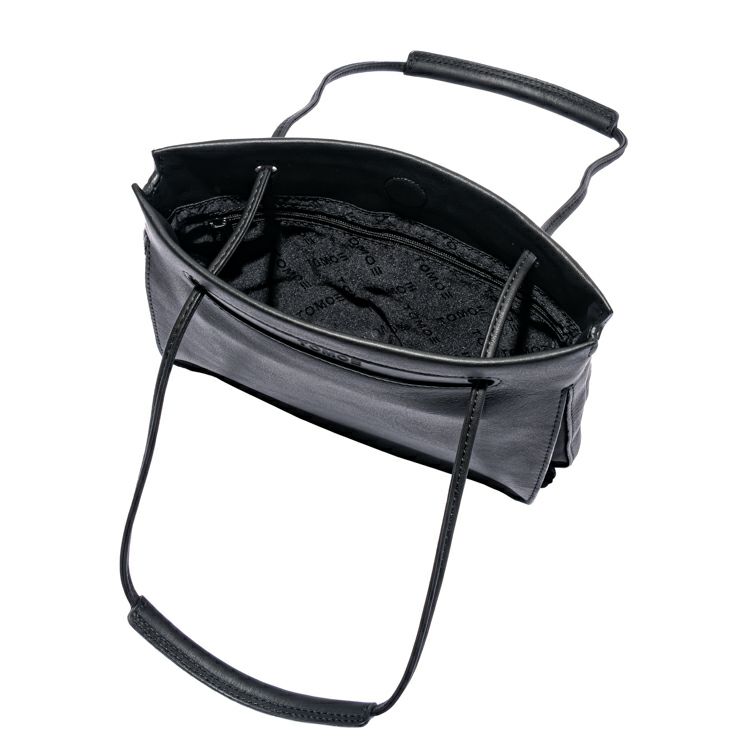 ハンドルを1本にして斜め掛けショルダーに、2本にして手提げとして使える2WAY仕様。持つ時にハンドルを引っ張ると自然と開口部が閉じる、実用性も考え抜かれた構造です。