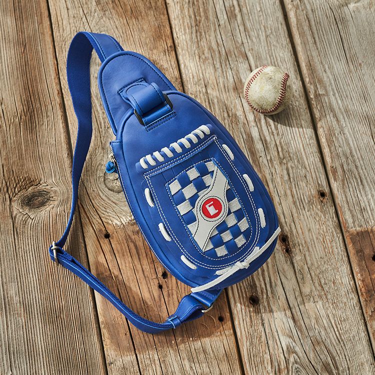 カラーは、Royal BlueとWhiteを使った2種類をご用意。チャーム部分には、実際の野球グラブに使用されるレース紐を使用しています。