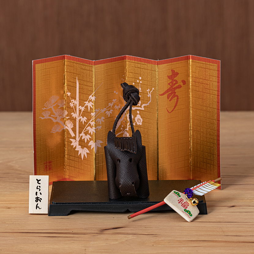 干支には、一年の始まりに身につけることで幸運や前向きな流れを呼び込むという意味が込められています。力強く、しなやかに前へ進む「午(うま)」の姿に、新しい一年への願いを重ねました。型崩れにしにくいサフィアーノレザーを使用し、日常にさりげなく寄り添うチャームに仕上げました。