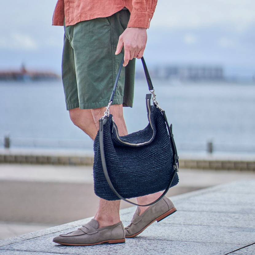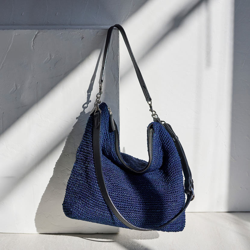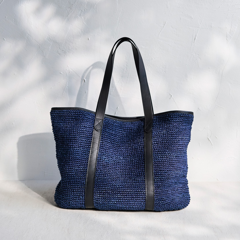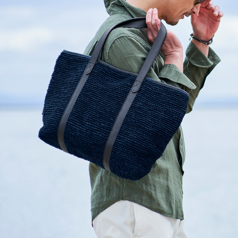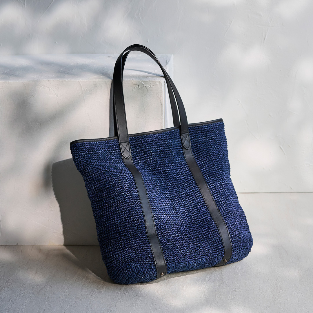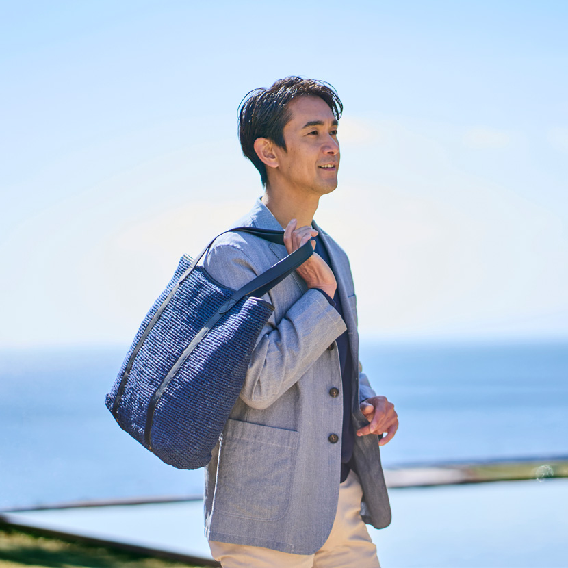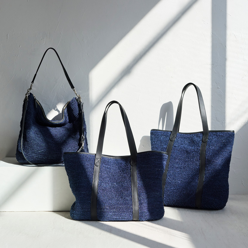 ネイビーのバスケットトートを肩にかけて、光の差し込むオフィスへ。週末は2WAYショルダーを手に持って、気ままな街歩きへ。ラフィアのリュックを背負えば、両手が自由になって、旅先でも思い切り動けます。