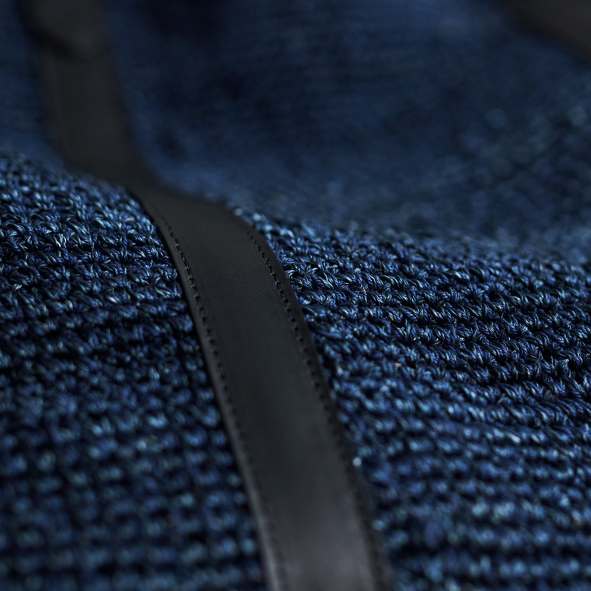 現地の職人が、その繊維を一目一目、手で編み上げています。機械では出せない、ゆらぎのある表情がそこに生まれます。さらにモナココットン糸を一緒に編み込むことで、かご素材特有のチクチク感を抑え、肌に触れても心地よい仕上がりになっています。 光の角度によって変わる陰影、手のひらに伝わる柔らかなテクスチャー——持つたびに、素材の豊かさを目で見て、指先で感じていただけます。