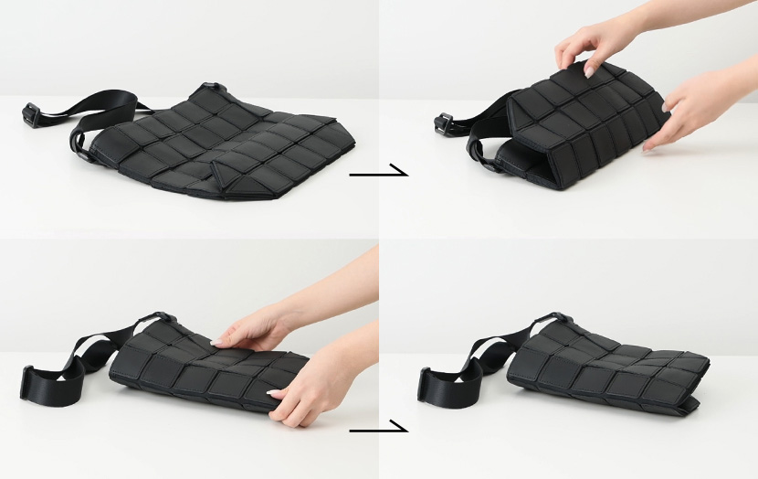 紙袋のように平らに折りたためる設計で、出張時はキャリーケースにすっきり収まり、使わない時も場所を取らずに収納可能。旅行のサブバッグとしても頼れる存在です。