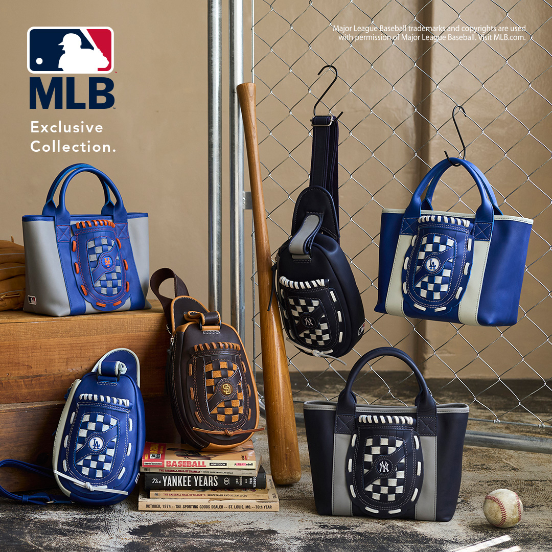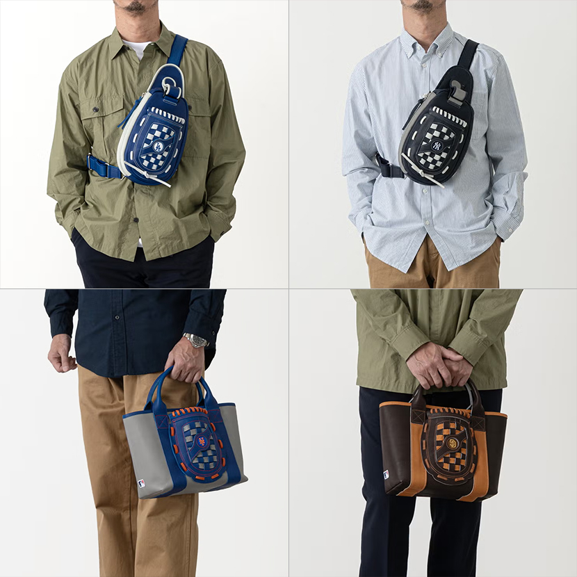その熱気に敬意を込めたMLB公式エクスクルーシブコレクションとして、「ドジャース」「ヤンキース」「メッツ」「パドレス」の4球団をモチーフに、人気のグローブボディバッグとミニトートを展開しています。