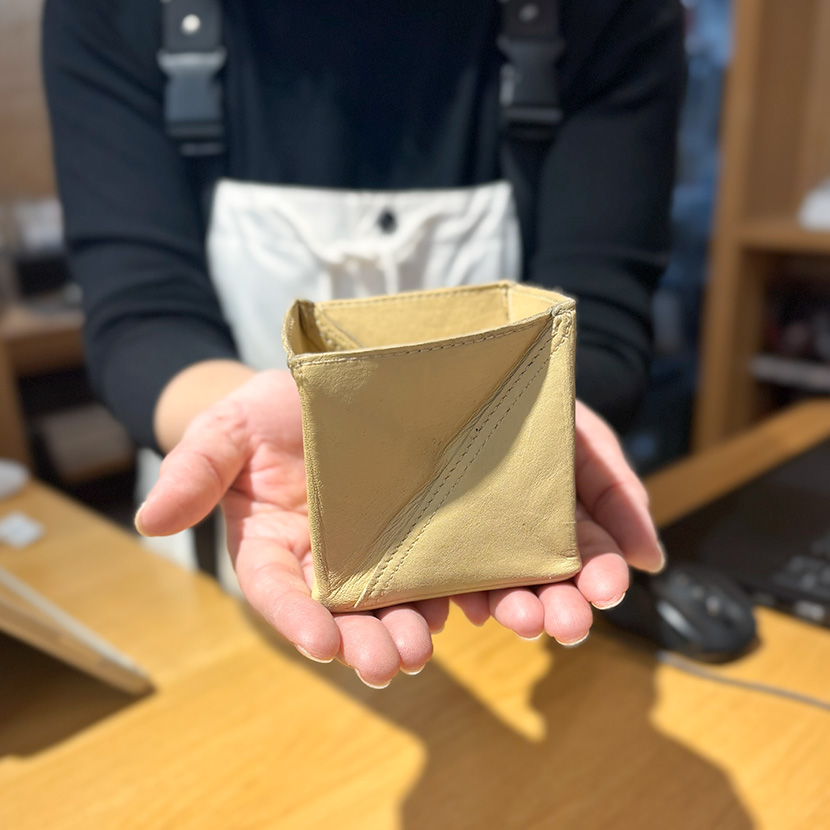 菊野:見た目からしてユニークなこのコインケースは、ペタンコでかさばらないのに、開けると容量もしっかり。お買物時、このコインケースで小銭を取り出そうとすると、「面白いですね!それー」って絶対褒められます。